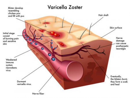 Исходя из этого, можно сделать вывод, что заболевание не такое уж и безобидное, и его проявления порой требуют госпитализации в стационар. После перенесенной болезни вирус пожизненно остается в нервных ганглиях, что в последующем в старшем возрасте может стать причиной такого заболевания, как опоясывающий лишай. При этом высыпания появляются по ходу нервов и сопровождаются мучительными невралгическими болями. Пациент вынужден находиться в постели, а порой, при развитии осложнений (паралич, нарушение зрения) должен быть госпитализирован в стационар. Что еще немаловажно, такой человек является источником заражения ветряной оспой.