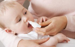 - у детей до 6 месяцев — закапывание солевых растворов в нос, после 6 месяцев — назначение при сильном рините сосудосуживающих капель на 1–3 дня;